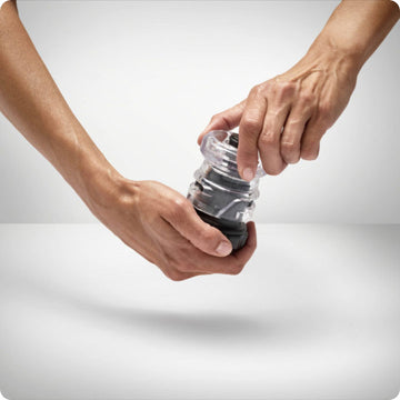 Place the transparent capsule creator onto the black capsule holder. Push down, twist to the right, and twist to the left
