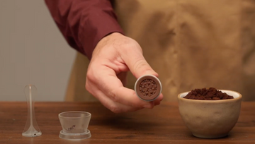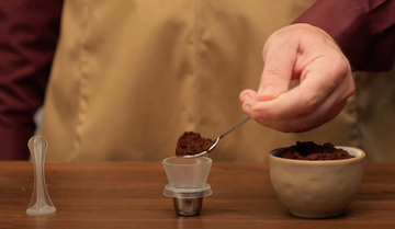Using freshly ground coffee, fill the capsule and tamper.